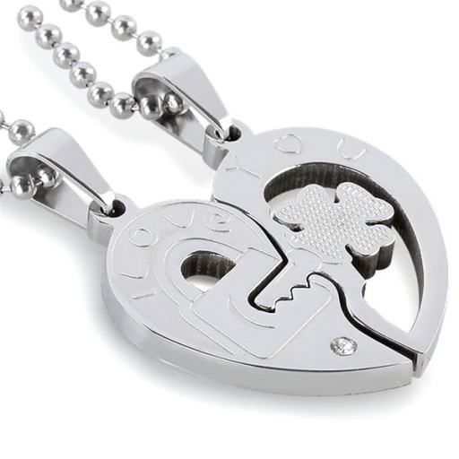 ✅ Zawieszka jako całość ma kształt serca z kluczykiem oraz czterolistną koniczyną.
