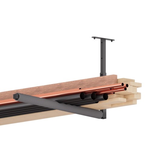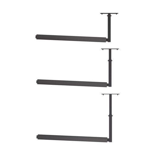 - Regulowane zawieszenie. Uchwyt sufitowy jest regulowany, co pozwala dostosować wysokość do własnych potrzeb. Dzięki temu możesz wygodnie przechowywać różnorodne przedmioty, takie jak drabiny, kajaki, wędki czy narzędzia.