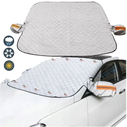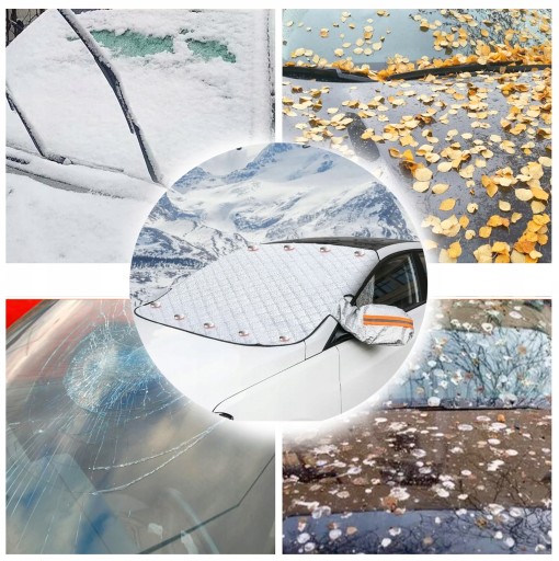 - Osłona przedniej szyby samochodu zapewnia silną ochronę Twojego samochodu. Zimą jest chroniony przed lodem, śniegiem i mrozem; latem jest chroniony przed słońcem. Może być również używany jako osłona ochronna, aby uniknąć kurzu i liści w codziennym życiu.