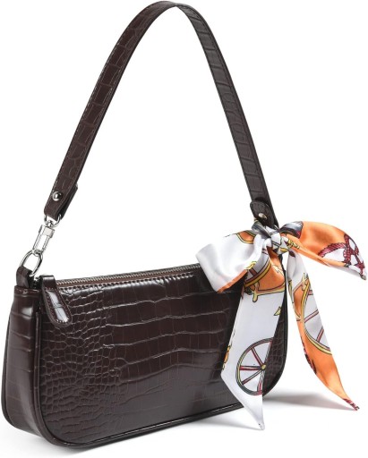Aucuu torby na ramię dla kobiet, wzór krokodyla z lat 90-tych, klasyczna torba z uchwytem PU dla kobiet, torby pod pachami z zamkiem zasilającym (czarny, biały, brązowy)