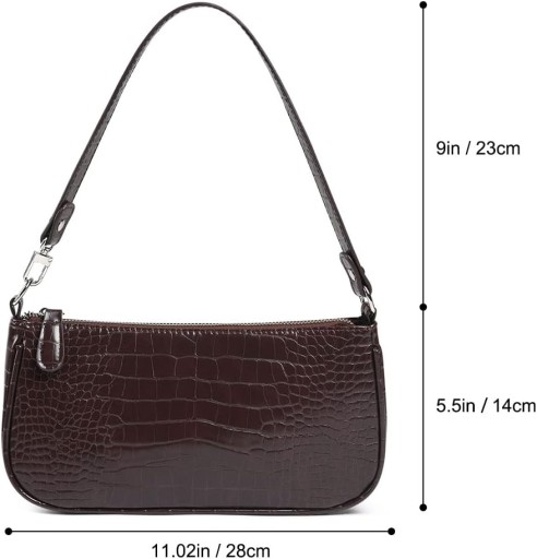 【Wzór krokodyla】Wykonane z wysokiej jakości skóry PU z utworzeniem krokodyla na zewnątrz i nylonową podszewką. Skóra PU jest wodoodporna i zmywalna, usuwalna do czyszczenia, wystarczająca do przetarcia wilgotną chusteczką lub ręcznikiem 【ROZMIAR】Rozmiar damskich torebek mody wynosi 11,02 "L x 5,51'' szer. x 41,57'' H (28 x 14 x 4 cm), a wysokość uchwytu wynosi 9,05" (23 cm) Duża pojemność: torba na ramię ze sztucznej skóry zawiera: komorę główną, pomiar boczną zapinaną na zamek, pozłacaną pomiarami i pomiarami wymiarów zapinana na zamku. Jest dużo miejsca, aby przekazać przedmioty, które dziewczyna musi być zastosowana podczas zwykłego ruchu, takie jak szminki, lustre, perfumy i telefony komórkowe ELEGANCKI STYL RETRO LAT 90: efekt czarny krokodyla inspirowany stylem lat 90-tych, do pojawienia się stylu tego sezonu, torba na ramieniu z imitacją skóry wzór krokodyla ozdobiony srebrnymi elementami metalowymi, luksusowym wyglądem, wysokiej jakości designem, odczepianymi uchwytami. Z wstążką, elegancko i szlachetna PRAKTYCZNY I FUNKCJONALNY: może być używana jako torebka i torba na ramię, bardzo nadaje się do noszenia na co dzień, w przypadku lub na weekend, imprezy i imprezy. podłączenie jest wszystkimi ubraniami w szafie, a także innym wyborem jako prezent Opis produktu