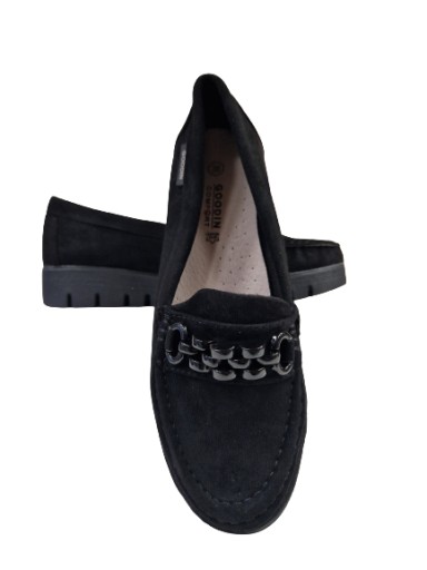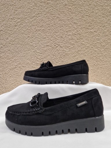 MOKASYNY GOODIN stylowe mokasyny wykonane z najwyższej jakości skóry ekologicznej zamszowej. Skórzana wkładka zapewnia wysoki komfort użytkowania. To doskonała propozycja dla Pań ceniących sobie komfort i wygodę. Bardzo mięciutkie i wygodne obuwie z przodu udekorowane tzw. koralikami.