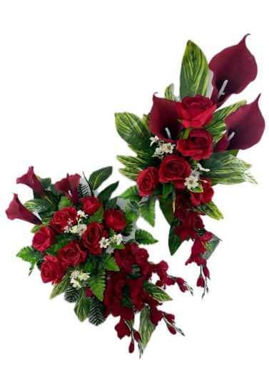 WIĄZANKA STROIK KOMPOZYCJA SZTUCZNE KWIATY KOMPLET NA GRÓB RÓŻA KALIA MIECZYK