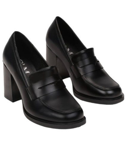 MOKASYNY PÓŁBUTY CZÓŁENKA DAMSKIE NA OBCASIE SKÓRA EKOLOGICZNA LICOWA CZARNE