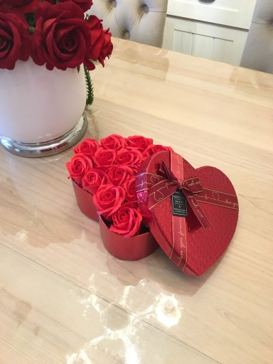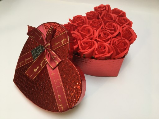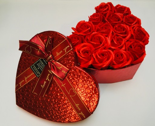 ❤️ ❤️ Kwiaty mydlane w kolorze czerwonego . w pudełku z pokrywą.