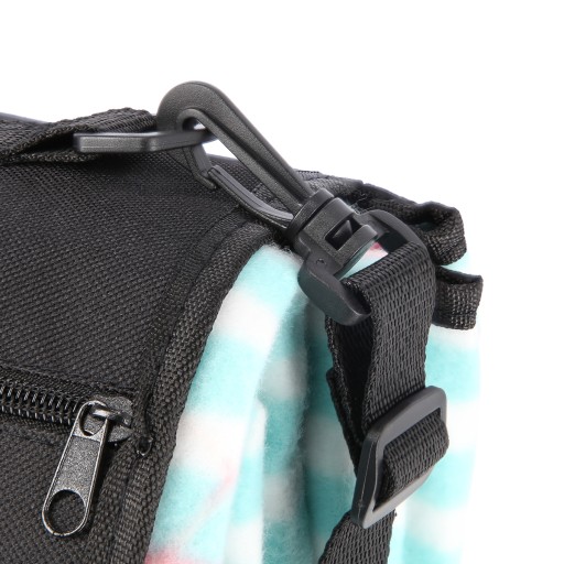 Specyfikacja: Materiał: Góra: polar Dół: PE + aluminium + 2 mm pianka Wymiary: Długość: 200 cm Szerokość: 200 cm Wymiary po złożeniu: Długość: 43 cm Szerokość: 31 cm Wysokość: 12 cm Kieszonka: tak Wymiary kieszonki: 34 x 35,5 cm Długość regulowanego paska: 53,5 – 90 cm Waga produktu: 1060 g Uwagi: Nie przeznaczony do użytku komercyjnego Gwarancja 24 miesiące