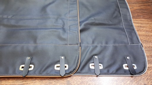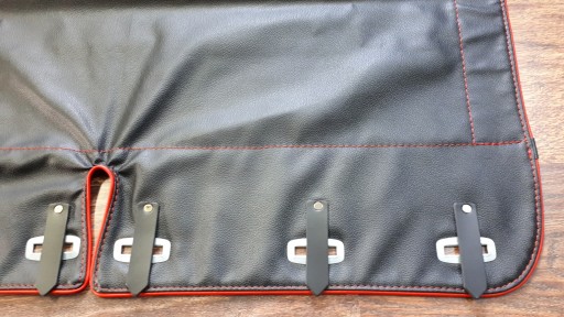 Plandeka skaj + biza ozdobna. Oczka ocynk. Paski naciągające są wykonane z mocnej skóry. Wysoka jakość wykonania.