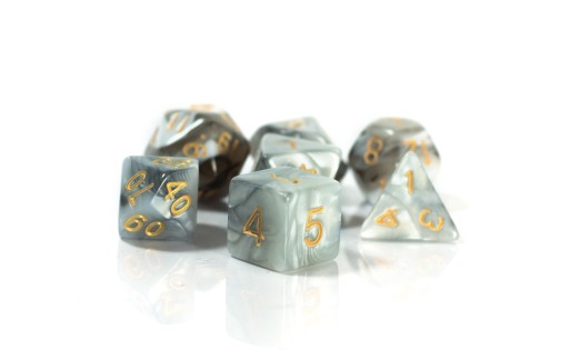 Komplet kości, czyli siedem wysokiej jakości kostek. Dzięki odpowiedniemu wyważeniu są bardzo wygodne w użyciu.