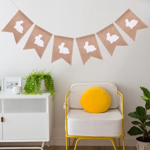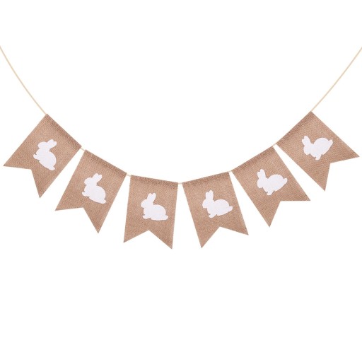 Zajączek wielkanocny z jutowym banerem Ozdoba lniana flagi na obchody Windows