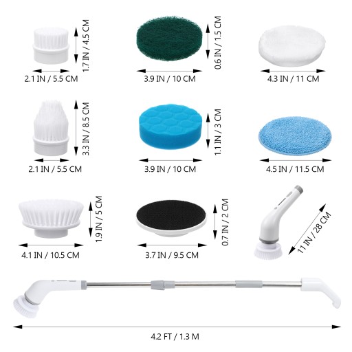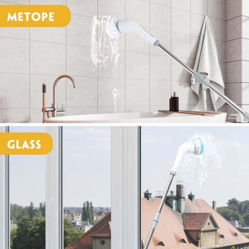 ✅Wielofunkcyjna, elektryczna szczotka do czyszczenia łączy w sobie długi korpus z rączką i wiele wymiennych głowic czyszczących do szerokiego zakresu zastosowań, takich jak czyszczenie łazienek, basenów, ścian i podłóg.