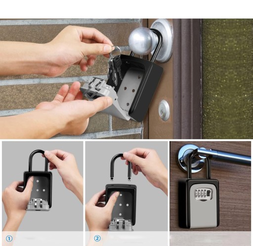🔐Bez instalacji: dzięki przenośnej skrzynce na klucze z wyjmowanym kodem liczbowym możesz ją zawiesić w dowolnym miejscu, w tym na klamce drzwi, płocie, balustradzie, rurze itp. Nie są wymagane żadne narzędzia. Dzięki wszystkim dołączonym elementom montażowym i wstępnie wywierconym otworom skrzynkę na klucze z kodem numerycznym do użytku na zewnątrz można przymocować do ściany lub przymocować do solidnej powierzchni wewnątrz lub na zewnątrz, w zależności od potrzeb.