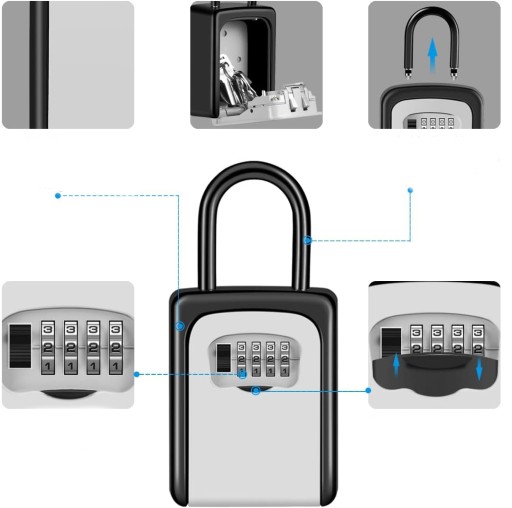🔐Pojemność: skrzynka na klucze oferuje miejsce na maksymalnie 5 kluczy. Możesz także przechowywać swoją kartę kredytową i USB. Uwaga: Ponieważ górną część wnętrza zajmuje sam mechanizm zamka, przez tę część mogą przechodzić wyłącznie przedmioty o grubości nie większej niż 0,5 cm. Długie, grube przedmioty, takie jak zdalne kluczyki do samochodu, nie zmieszczą się.