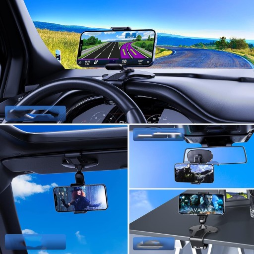 📳Uchwyt na telefon komórkowy do wielu celów: uchwyt na telefon komórkowy może być używany na desce rozdzielczej, osłonie przeciwsłonecznej, lusterku wstecznym, w biurze lub w domu, np. na stoliku nocnym itd.