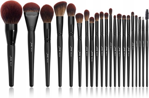 ① 21 pędzelków: 21 pędzli o różnych kształtach i rozmiarach, wielofunkcyjne do pudru, cieni do powiek, konturów, eyelinerów itd.