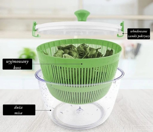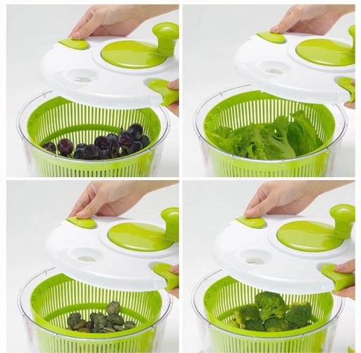 ⭐ Łatwa w Użyciu: Obsługa naszej suszarki to czysta przyjemność. Prosta konstrukcja i intuicyjne działanie sprawią, że nawet mniej doświadczeni kucharze będą zaskoczeni, jak szybko i łatwo można uzyskać idealnie suchą sałatę.