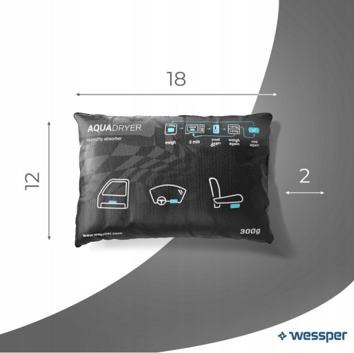 Pochłaniacz Wilgoci Wessper Universal gwarantuje szybkie usunięcie wilgoci z samochodu, niewielkich pomieszczeń gospodarczych lub zawilgoconych przedmiotów.