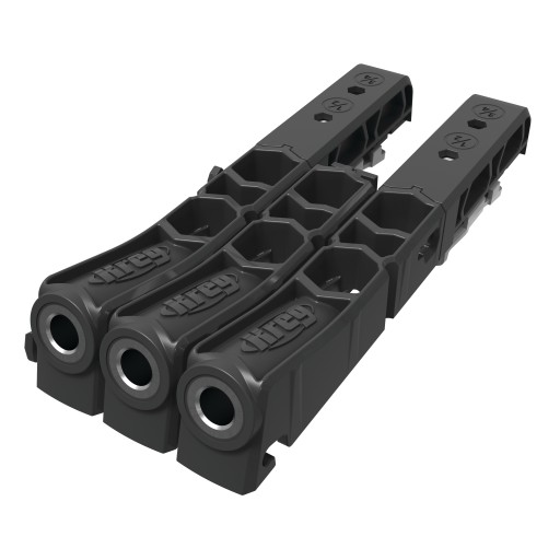 - Adapter zaciskowy - dla pewniejszego trzymania zacisku Kreg. Można go podłączyć do jednostki wiertniczej, co umożliwia szybszą sekwencję wiercenia.