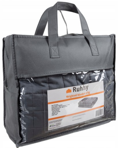 Kołdra jest zapakowana w torbę z uchwytami, zapinaną na zamek.