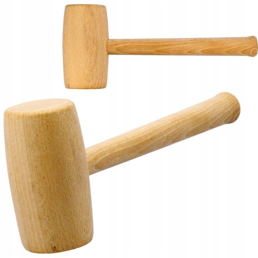 Drewniany młotek zapewniający delikatność pracy i bezpieczeństwo obrabianej powierzchni.