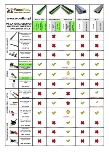 !! Sprawdź: TABELA KOMPATYBILNOŚCI AKCESORIÓW DO PROFILI T-TRACK I MITER TRACK !!