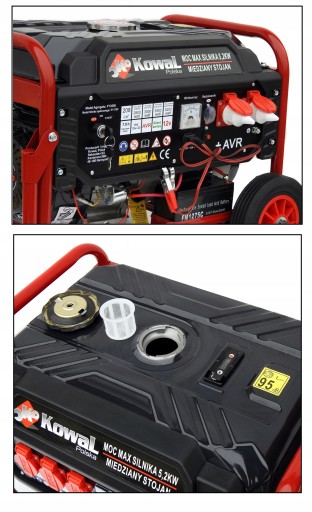 Stojan i wirnik stanowią blisko połowę wartości agregatu. Wiele firm posiada jedynie "miedziowane" uzwojenie na stojanie o szerokości wynoszącej 70-100mm. We wszystkich agregatach firmy KowaL o mocy silnika 5,2kW zastosowano stojan o długości wynoszącej aż 120mm. Stojan nawinięty w pełni miedzianym drutem.Miedziana prądnica współpracuje z bardzo popularnym silnikiem o symbolu: Fy170, który na zlecenie marki KowaL Polska wyprodukowany jest z najwyższej jakości części zamiennych a także głównych elementów składowych.tj: wał,tłok,korbowód,zawory. Szczegóły w dalszej części aukcji.