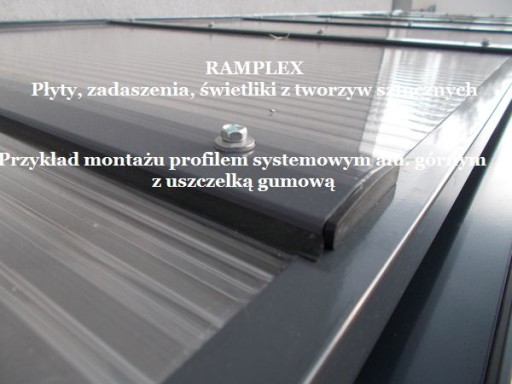 Profil systemowy aluminiowy montażowy górny pozwala precyzyjnie, sztywno i przede wszystkim szczelnie zamontować i docisnąć płytę ( nie tylko na łączenia), a dzięki temu zachowane jest bezpieczeństwo przed wyrywaniem i uszkadzaniem płyt przy trudnych warunkach pogodowych.