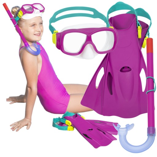 Zestaw do nurkowania dla dzieci Bestway: maska+ rurka + płetwy niezbędne akcesoria dla każdego, kto chce zapewnić swojemu dziecku bezpieczne i przyjemne doświadczenie podczas nurkowania. Zestaw ten zapewnia bezpieczeństwo podczas zanurzania się, ponieważ umożliwia dziecku oddychanie gdy twarz będzie znajdować się pod powierzchnią wody, bez konieczności wyciągania głowy na powierzchnię.