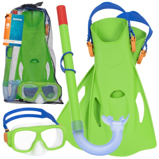 Zestaw do nurkowania dla dzieci Bestway: maska+ rurka + płetwy niezbędne akcesoria dla każdego, kto chce zapewnić swojemu dziecku bezpieczne i przyjemne doświadczenie podczas nurkowania. Zestaw ten zapewnia bezpieczeństwo podczas zanurzania się, ponieważ umożliwia dziecku oddychanie gdy twarz będzie znajdować się pod powierzchnią wody, bez konieczności wyciągania głowy na powierzchnię.