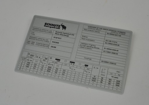 Odtworzenie tabliczki znamionowej SCHMITZ Cargobull (dwie wersje):