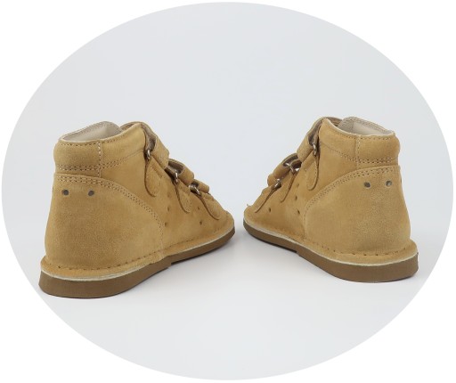 - W usztywnieniu pięty zastosowano materiał termoplastyczny, który nie ulega zmiękczeniu podczas użytkowania, zapewniając prawidłowy rozwój wrażliwej stopy dziecka