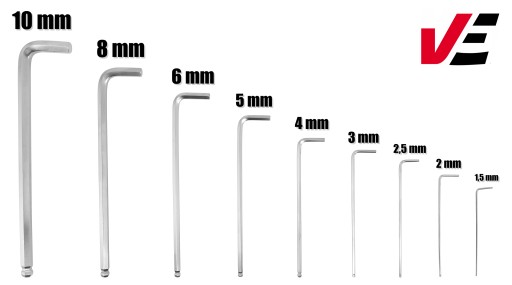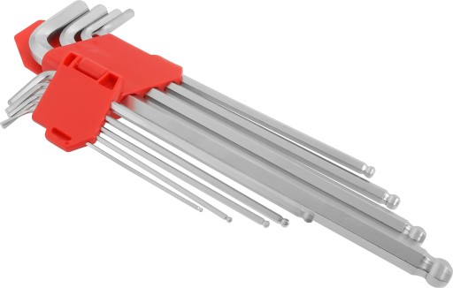 - zestaw 9 sztuk kluczy imbus - 1,5mm, 2mm, 2,5mm, 3mm, 4mm, 5mm, 6mm, 8mm, 10mm