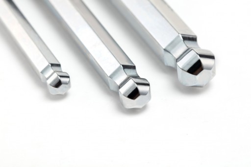 Zestaw kluczy imbusowych wykonanych z wysokiej jakości stali, charakteryzującej się dużą wytrzymałością i sprężystością.