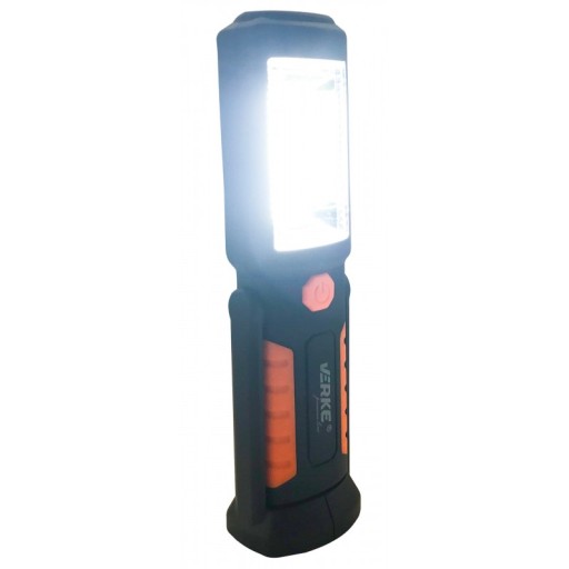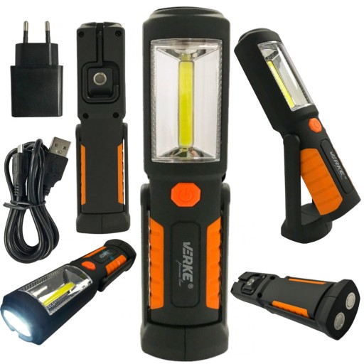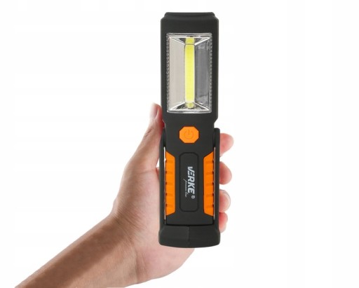 Dzięki zastosowaniu technologii LED COB (pasek diodowy) latarka daje dużo więcej światła w porównaniu do tradycyjnych a przy tym jest dużo bardziej oszczędna. Poręczna obudowa, urządzenie pewnie leży w dłoni. Pojemność akumulatora - 800mAh. Magnetyczna obrotowa podstawa z wbudowanym magnesem oraz zawieszka czynią latarkę bardzo uniwersalną i komfortową w użytkowaniu. Latarka posiada 2 źródła światła - pasek diodowy LED COB oraz światło punktowe z diodami led u góry lampki. Produkty firmy Verke zasłynęły w Polsce dzięki doskonałej jakości wykonania o autentycznych parametrach.