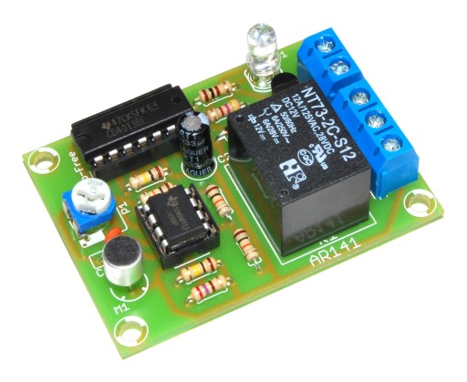 - AR141 Włącznik dźwiękowy – klaskacz / lampka - włącznik akustyczny (dźwiękowy), zwany popularnie klaskaczem, umożliwia sterowanie na odległość różnymi urządzeniami. Polecany jest głównie do sterowania oświetleniem - np. żarówkami 230V, bądź oświetleniem LED 12V. Układ, w przeciwieństwie do podobnych konstrukcji na rynku, posiada dokładną regulację czułości, dzięki temu możliwa jest praca urządzenia w odległości od kilkudziesięciu cm do ok. 8m.