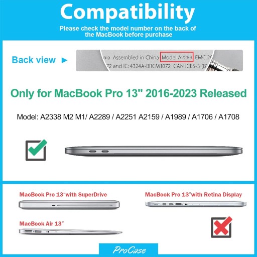 Чехол ProCase для MacBook Pro 13 дюймов + накладка на клавиатуру A2289 A2251