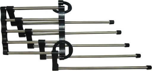 ✅ Posiada 5 metalowych ramion zakończonych plastikowymi nakładkami, które zapobiegają przesuwaniu się rzeczy.