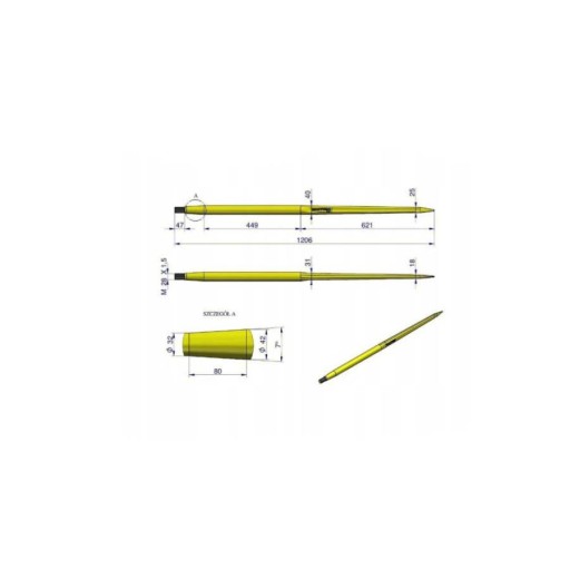 Ząb ładowacza gruby uniwersalny prosty L- 980 mm Tur na tuleję od zęba 1200 WARYŃSKI