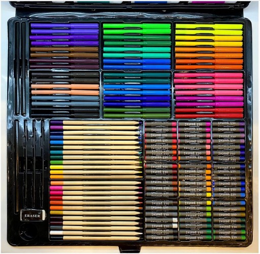 Zestaw Artystyczny 258el. do Malowania XXL Walizka Etui na Kredki Mazaki