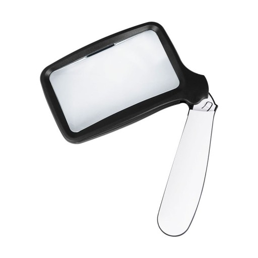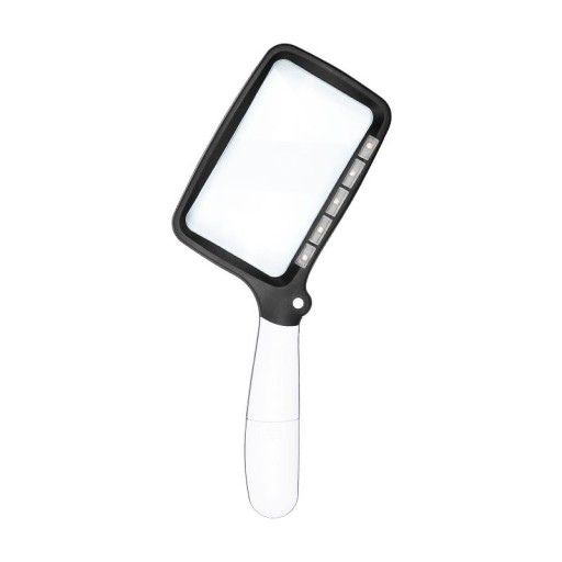 Lupa ma prostokątną soczewkę. Obok niej umieszczono oświetlenie LED z regulowaną jasnością. Światło jest równomierne i wystarczające do pracy nawet w ciemnym pomieszczeniu. Oświetlenie jest zasilane standardowymi bateriami (kupowanymi osobno).