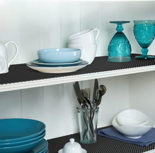 Pochłaniająca dźwięk mata antypoślizgowa zapewnia przyczepność w szufladzie lub szafce, zapobiega zadrapaniom oraz suwaniu i przemieszczaniu naczyń w szafkach.