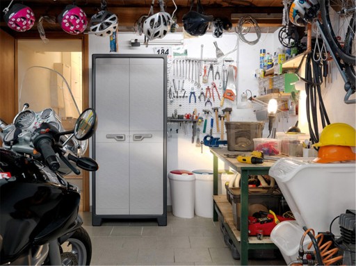 Ten model szafki ma minimalistyczny styl i łatwo utrzymać go w czystości. Szary kolor sprawdzi się w pomieszczeniach przeznaczonych do pracy generującej pył jak garaż, piwnica czy kotłownia. Możesz postawić ją również na osłoniętym balkonie i w nieogrzewanym wnętrzu, gdyż tworzywo schowka ma dużą tolerancję na temperaturę i wilgoć.