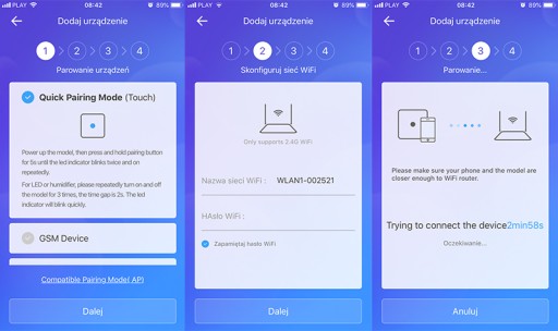 Upewnij się, że telefonem jesteś połączony ze swoją domową siecią WiFi - to do niej również będzie podłączony włącznik (pamiętaj, że on również musi być w zasięgu sieci).