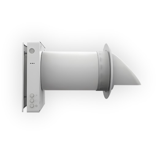Urządzenie wyposażono w teleskopową rurę, którą bez problemu dopasujesz do grubości ściany. Rura ma minimalną długość 27.5 cm a maksymalną 47.5 cm i zapewnia szczelne połączenie rekuperatora z otworem w ścianie.