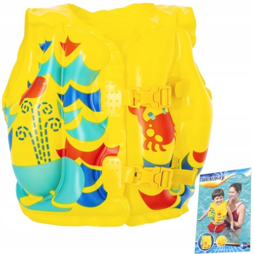 Kamizelka do nauki pływania Bestway o wymiarach 41 cm x 30 cm przy asekuracji osoby dorosłej zapewnia małym pływakom pełne bezpieczeństwo.