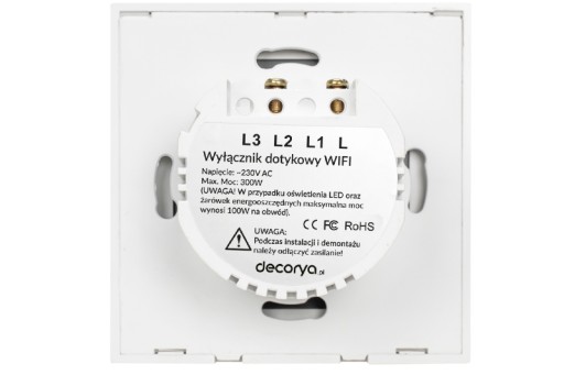 Wykorzystując najnowsze technologie wyłącznik Decorya ma czuły panel dotykowy pokryty grubym szkłem hartowanym zapewniając mu dużą odporność na uszkodzenia i jednocześnie zapewnia wodoodporność frontu włącznika.