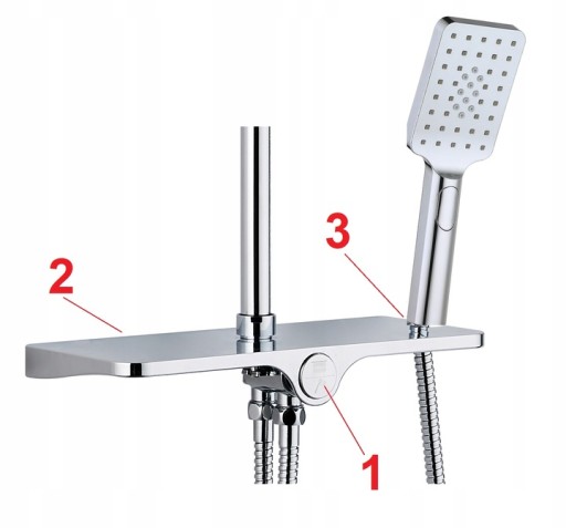 Półka jest wyposażona w dodatkowy uchwyt na słuchawkę natryskową,