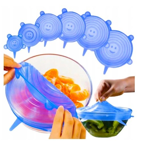 POKRYWKI SILIKONOWE UNIWERSALNE DO ŻYWNOŚCI 6SZT SZCZELNE NA POJEMNIKI