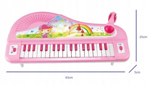 Pianinko jest zasilane 2 bateriami AA (brak w zestawie), dzięki czemu Twoja pociecha może je zabrać ze sobą dosłownie wszędzie, urządzając chociażby koncert dla najbliższych!