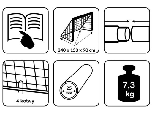 - 4 kotwy do bezpiecznego umocowania bramki,