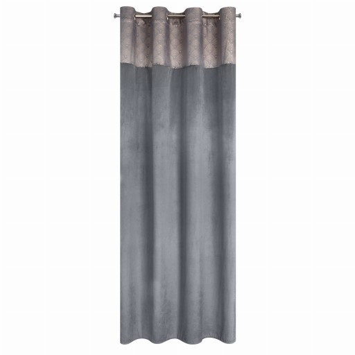Zasłona welwetowa zdobiona kryzą z szampańskim nadrukiem szerokość: 140 cm, długość: 250 cm, kolor: grafitowy, Gramatura: 200 GSM, Skład: 100% poliester
